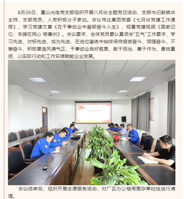 【黨建】重山光電黨支部開展八月份主題黨日活動