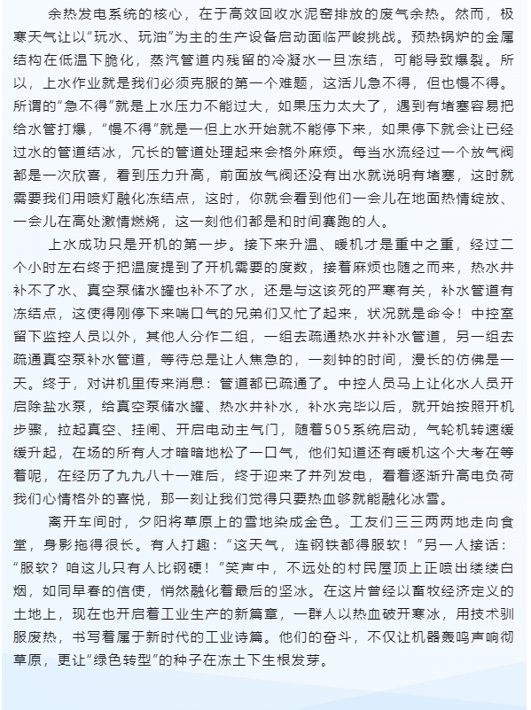【一線風采】破冰——魯蒙水泥余熱發電車間的早春戰歌