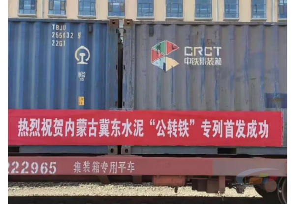 內蒙古冀東水泥“公轉鐵”專列首發。2021年8月,承載著內蒙古冀東熟料的數十個集裝箱專列在呼和浩特新暢鐵路園區首發成功。據悉,該專列錨定山東、天津等省外運距較遠的市場。