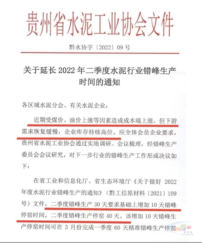 與此同時,部分地區限產時間再加碼。例如,湖南在原4月1日至5月31日全省每條新型干法熟料生產線錯峰停窯15天的計劃不變的基礎上,增加6月份停窯15天,二季度錯峰停窯總天數延長至30天。貴州省早前亦發文要求,二季度每條生產線在錯峰生產停窯40天基礎上,再增加10天錯峰生產停窯時間,二季度錯峰生產停窯40天。