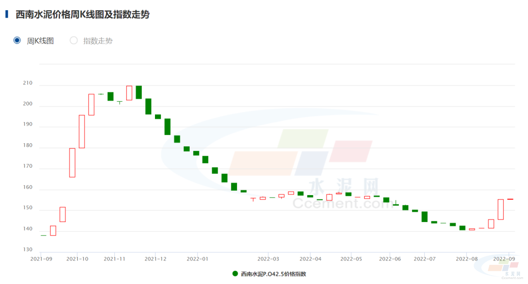 西南地區限電解除,企業復產,水泥價格小幅上漲0.12%;