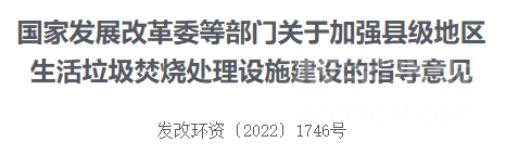 11月28日,國家發展改革委、住房和城鄉建設部、生態環境部、財政部、中國人民銀行五部門聯合印發了《國家發展改革委關于加強縣級地區生活垃圾焚燒處理設施建設的指導意見》。
