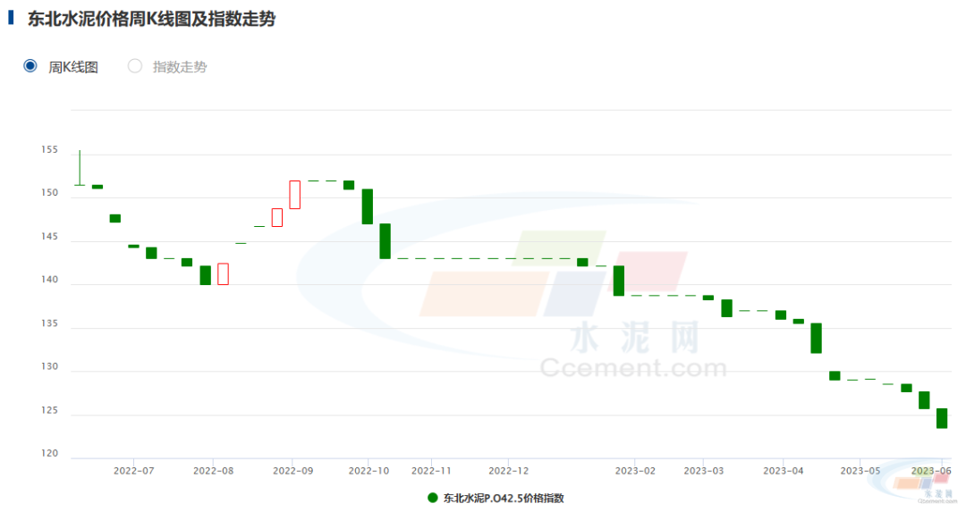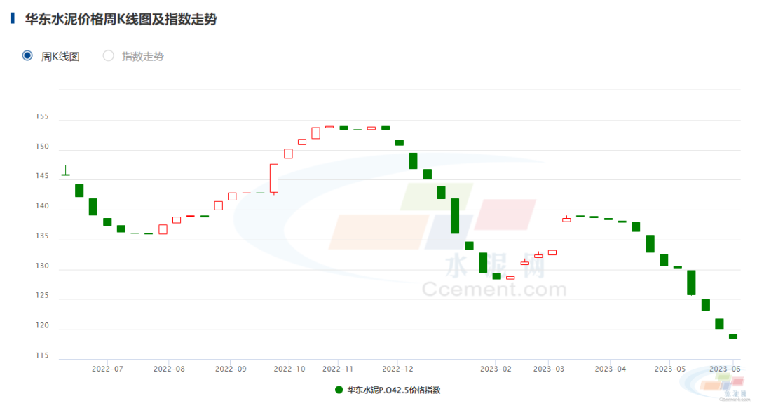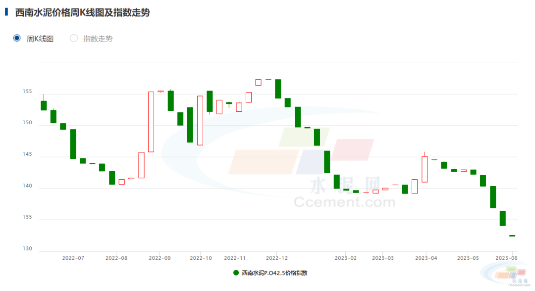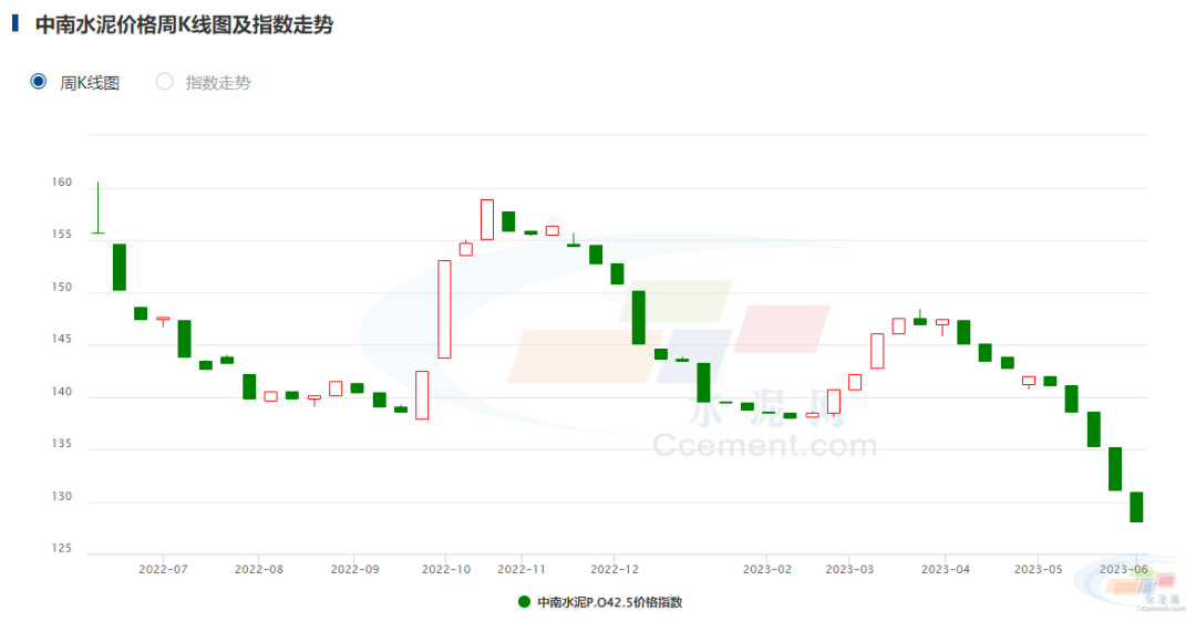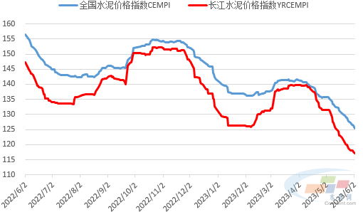 6月前后全國市場需求仍較疲弱,企業(yè)出貨較差,市場競爭激烈,水泥價格延續(xù)跌勢,或受前期跌幅較深影響,本周價格跌幅有所收窄;