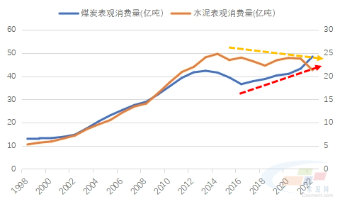 圖2:煤炭行業與水泥行業表觀消費量走勢