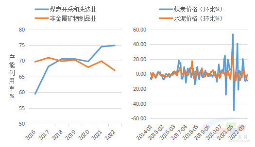 圖3:煤炭和建材產能利用率對比 圖4:2021-2022煤價波動加劇