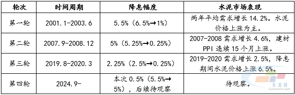 表1:2001年以來美聯儲歷次降息與水泥市場表現