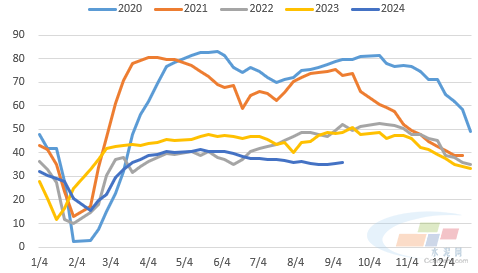 今年以來,受地產持續探底和基建資金不足等影響,水泥需求低迷態勢基本貫穿前三季度。中國水泥網水泥大數據顯示,截至當前,水泥發運率在36%左右,需求恢復不足四成,遠遜于同期。一方面,美聯儲降息,人民幣匯率升值,有利于減輕部分發行較多美元債的地產企業債務壓力,修復資產負債表;另一方面,貨幣政策空間打開后,市場利率下降,流動性增加,緩解部分基建項目資金壓力,短期需求有望轉暖。不同的是,前三輪降息周期中我國水泥需求處于上升期和高位平臺期,目前處于下行通道,長期來看需求下滑不可逆轉。