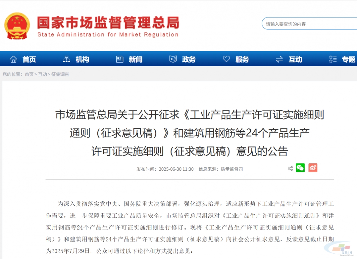 日前,市場(chǎng)監(jiān)管總局組織對(duì)《工業(yè)產(chǎn)品生產(chǎn)許可證實(shí)施細(xì)則通則》和建筑用鋼筋等24個(gè)產(chǎn)品生產(chǎn)許可證實(shí)施細(xì)則進(jìn)行修訂。現(xiàn)將《工業(yè)產(chǎn)品生產(chǎn)許可證實(shí)施細(xì)則通則(征求意見稿)》和建筑用鋼筋等24個(gè)產(chǎn)品生產(chǎn)許可證實(shí)施細(xì)則(征求意見稿)向社會(huì)公開征求意見。