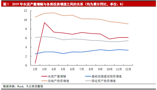 水泥行業是投資拉動型行業,下游消費需求與固定資產投資呈正相關性,其中基礎設施建設支出和房地產投資增速是影響水泥需求最重要的驅動因素。2019年以來,基礎設施建設方面經歷多次政策轉向,整體上獲得一定支持,但力度有限。2019年第一季度,受2018年下半年補短板政策延續的影響,基礎設施建設投資增速由年初的2.50%提高至2.95%。同時,專項債額度提前下達,長期流動性釋放等財政政策相繼實施,企業新增中長期貸款規模加大,配套資金同步落實,對基礎設施建設投資形成有力支撐。
