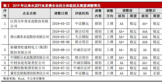 信用水平:2019年,水泥行業整體信用質量較好;預計2020年,水泥行業整體信用水平將保持穩定,但產能過剩相對嚴重的中小型水泥企業面臨被整合和淘汰的可能性較大,其償債能力存在不確定性。