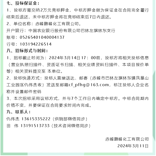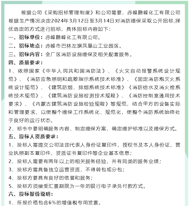 【招標(biāo)公告】鵬峰化工