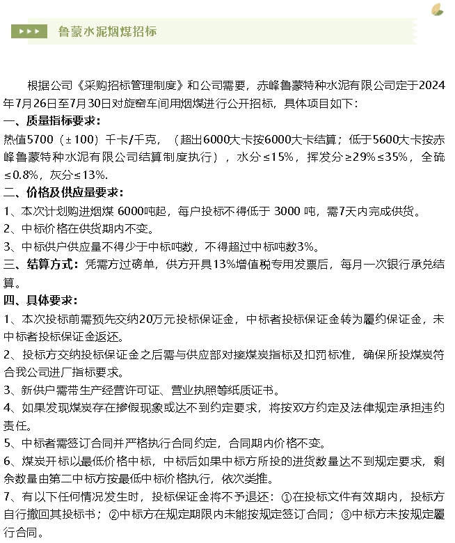 【招標公告】魯蒙水泥檢修項目、煙煤招標