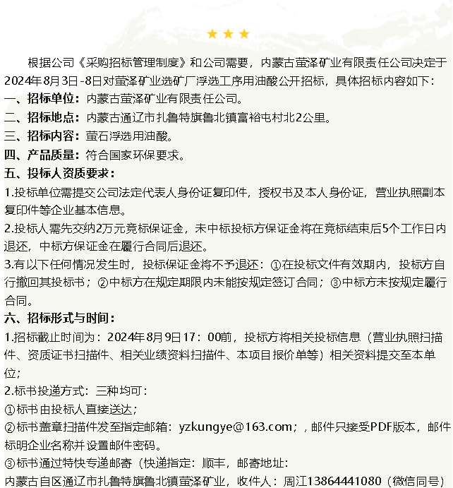 【招標公告】螢澤礦業(yè)