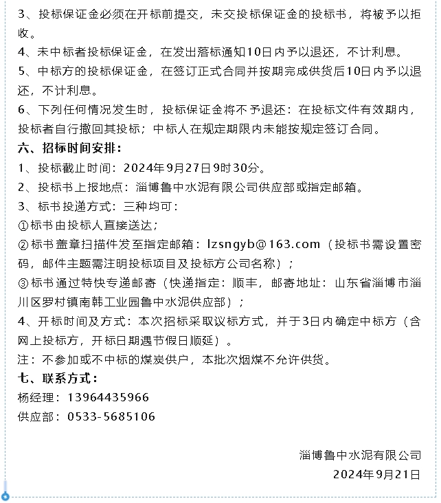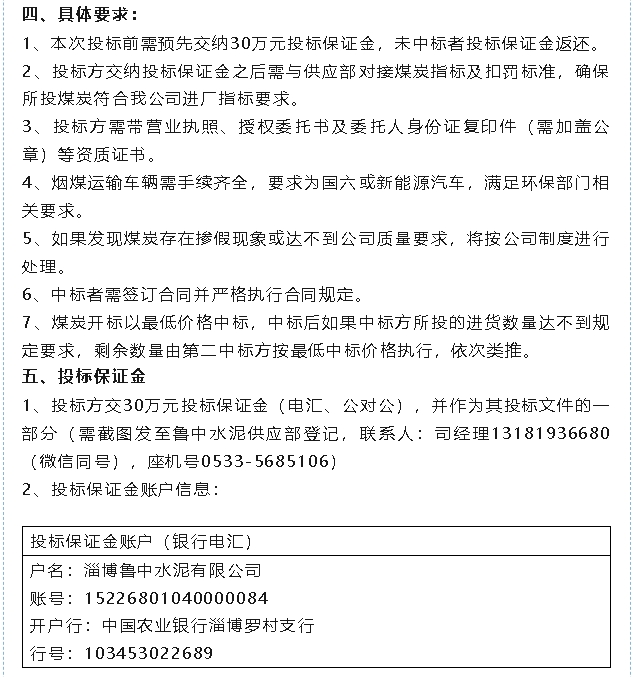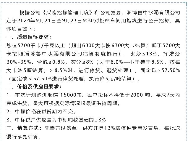 【招標公告】魯中水泥
