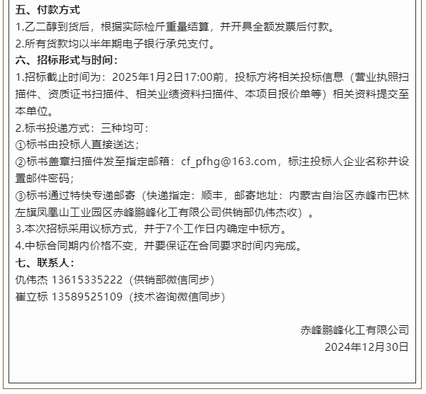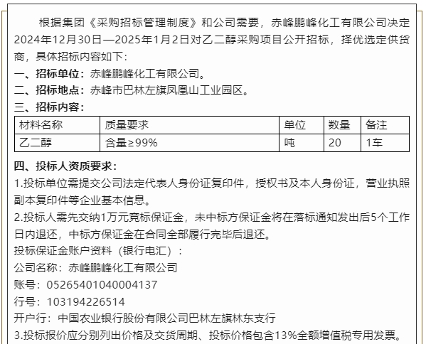 【招標公告】鵬峰化工