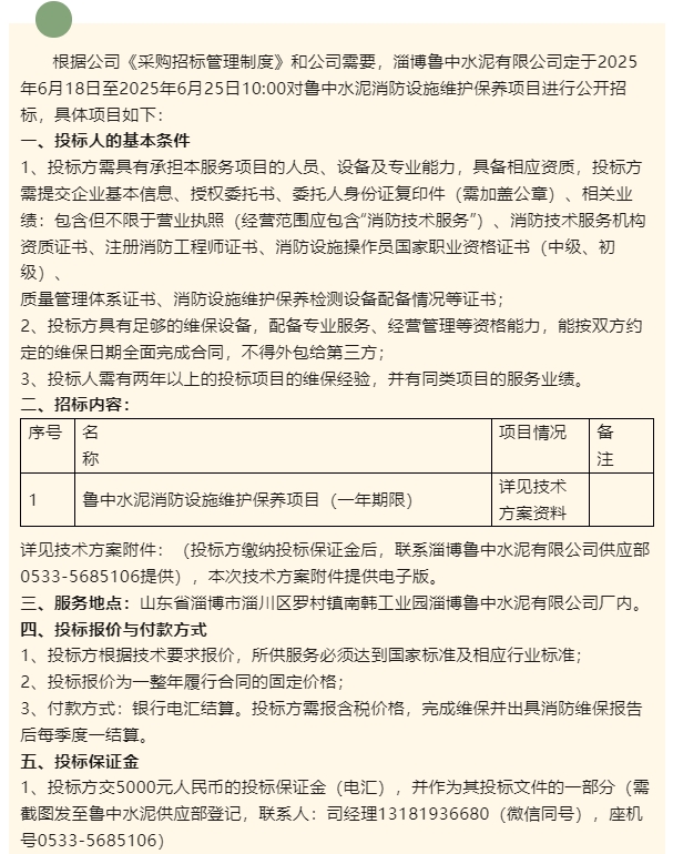 【招標公告】魯中水泥