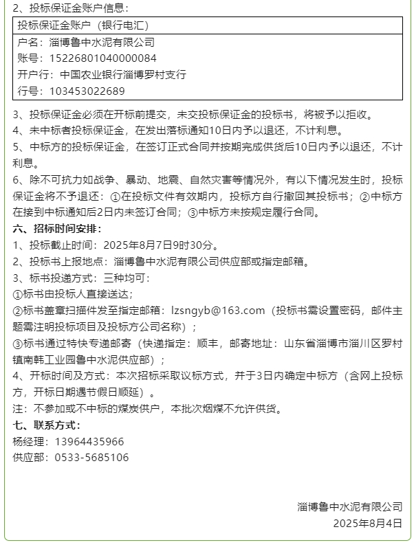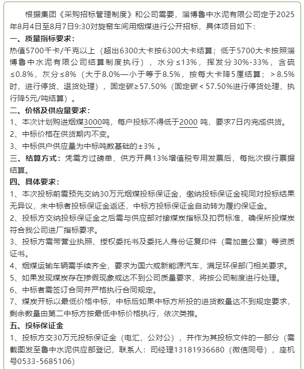 【招標公告】魯中水泥