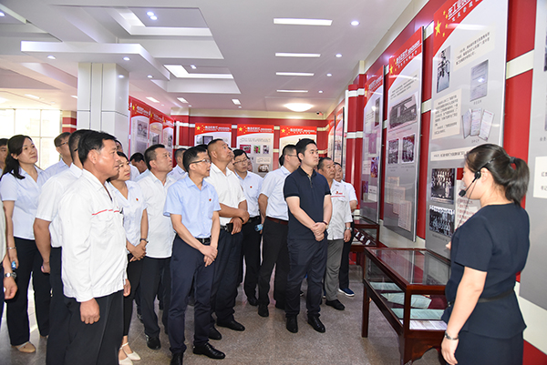 隨后,全體黨員干部代表集體乘車赴博山焦裕祿紀念館現場參觀,接受革命傳統教育,學習弘揚焦裕祿精神,進一步增強黨性修養和創業奮斗意識。在紀念館,黨員干部代表認真聽取講解,通過一張張圖片、一件件文物、一段段故事學習回顧焦裕祿同志光輝偉大的一生和感人致深的革命事跡,切身感受了焦裕祿同志親民愛民、艱苦奮斗、科學求實、迎難而上、無私奉獻的崇高精神。參觀結束后,全體黨員干部代表向焦裕祿同志塑像敬獻花籃并鞠躬致敬。全體黨員代表重溫入黨誓詞。參觀學習活動給黨員干部上了一堂生動難忘的黨課。本次主題教育活動,集團公司還為全體黨員發放了《苦難輝煌》學習書籍,要求每名黨員牢記黨的奮斗歷史和革命傳統,堅定不移的跟黨走,以高度的責任感、使命感投入到本職工作中去,為黨的事業發展做出新的貢獻。