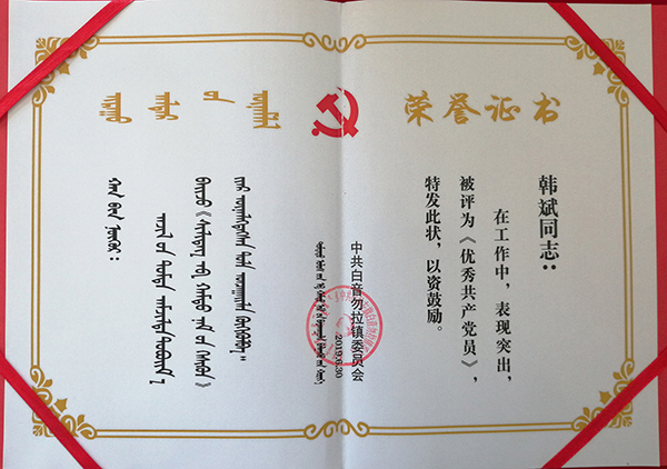 同日,魯蒙水泥黨支部組織黨員代表參加了白音勿拉鎮黨委組織召開的慶祝中國共產黨成立98周年暨“兩優一先”表彰大會。周海、韓斌兩同志分別榮獲“優秀黨務工作者”和“優秀共產黨員”榮譽稱號。